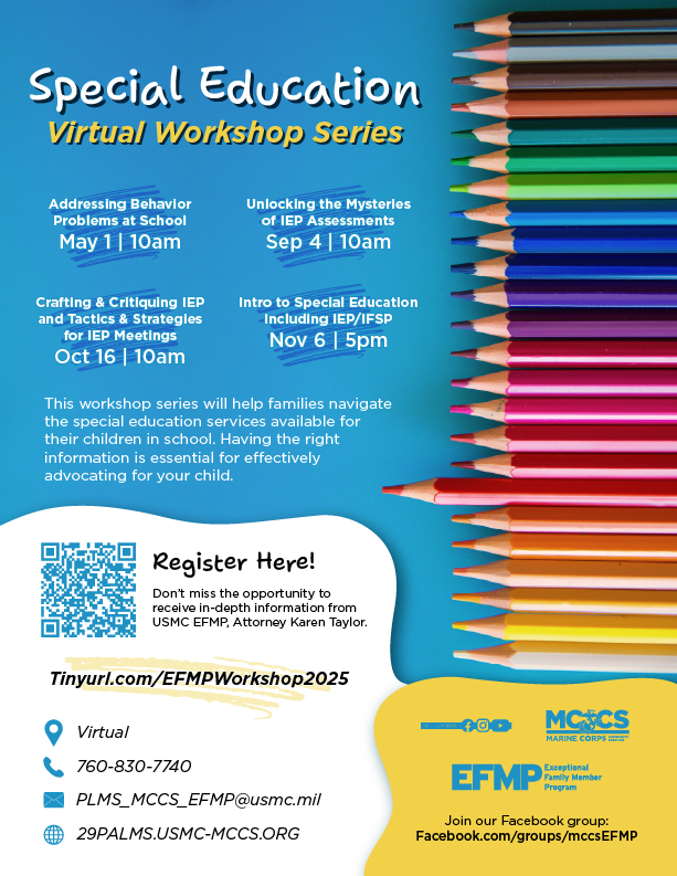 Don't miss the opportunity to receive in-depth information from USMC EFMP, Attorney Karen Taylor.